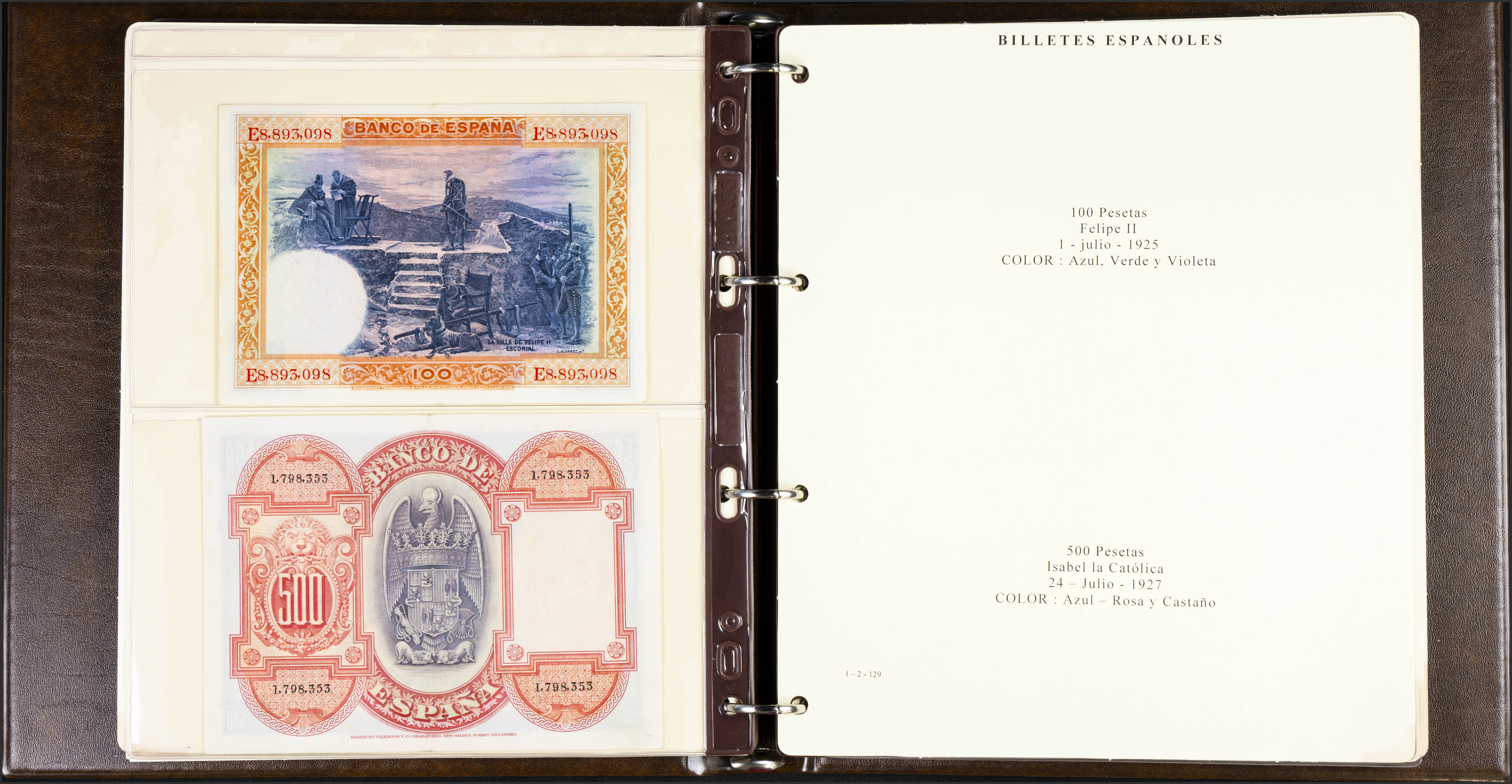 Spectacular remainder of a collection comprised of 20th-century banknotes, all denominated in pesetas and issued by the Bank of Spain. It includes almost all the denominations put into circulation. The collection is particularly noteworthy for its inclusion of high-value banknotes and high denominations, the latter in somewhat lower condition but highly sought after by collectors. A fantastic opportunity to acquire a substantial collection, ideal for both collectors and individual resale. A must-see.