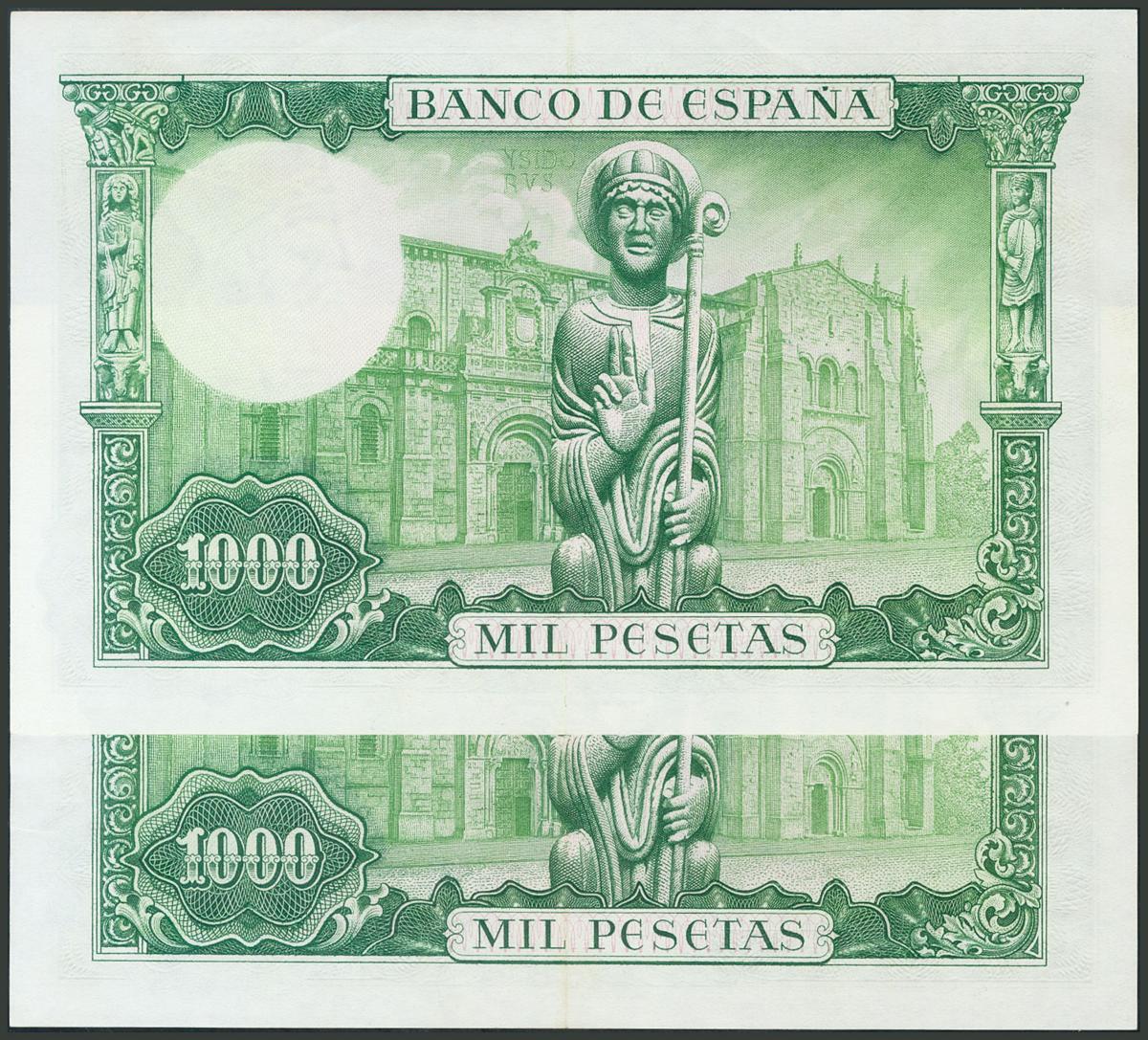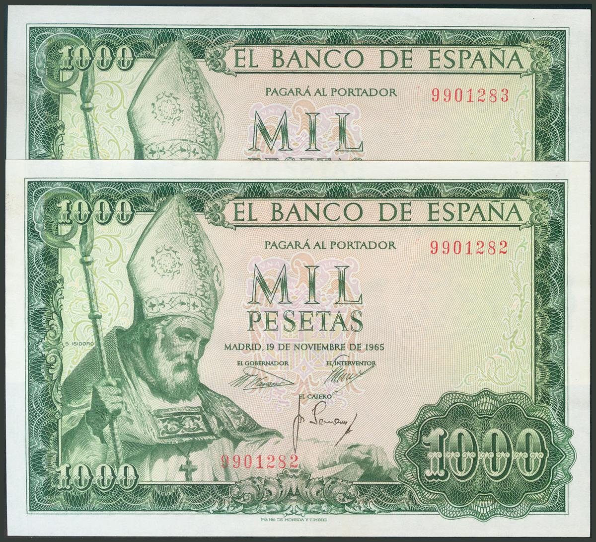 1000 Pesetas. 19 de Noviembre de 1965. Pareja correlativa. Sin serie. (Edifil 2017: 471). Apresto original. EBC.