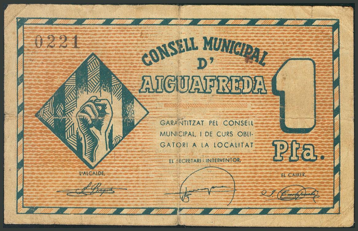 AIGUAFREDA (BARCELONA). 1 Peseta. (1938ca). (González: 6038). BC.