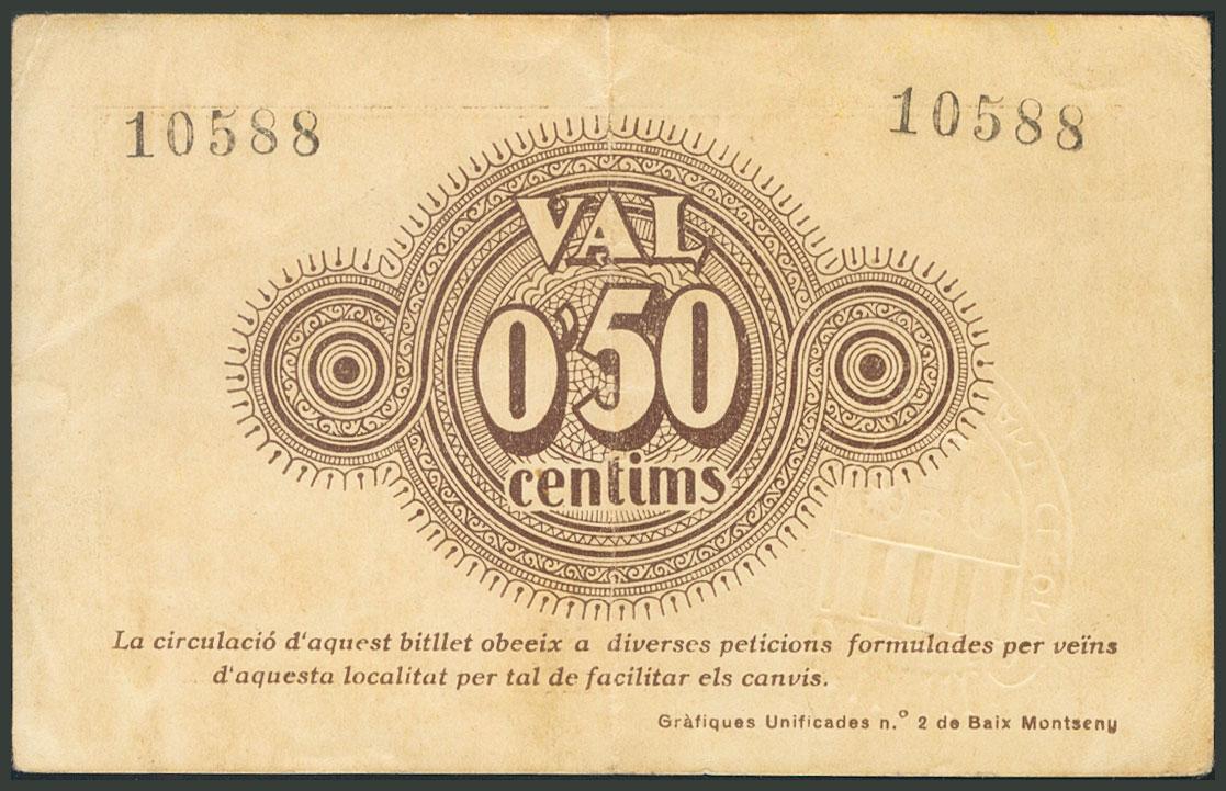 BAIX MONTSENY (BARCELONA). 0´50 Pesetas. (1938ca). (González: 6478). BC.