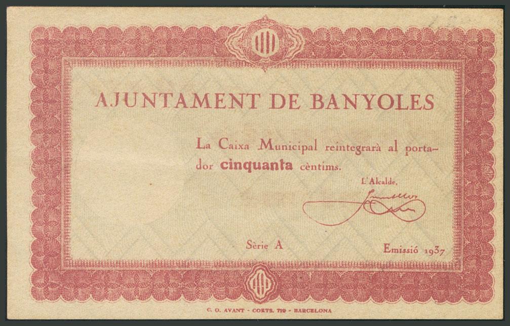 BANYOLES (GERONA). 50 Céntimos. 1937. Serie A. (González: 6505). EBC.