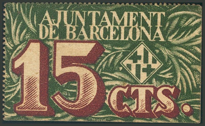 BARCELONA. 15 Céntimos. 2 de Diciembre de 1937. Serie B. (González: 6524). EBC+.
