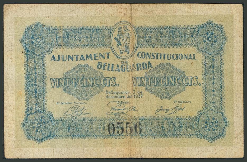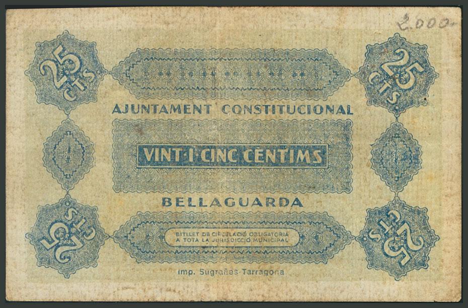 BELLAGUARDA (LERIDA). 25 Céntimos. 3 de Diciembre de 1937. (González: 6958). RC.