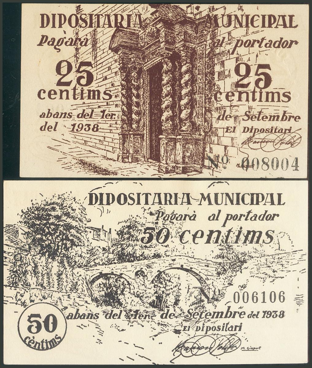 CALDES DE MONTBUI (BARCELONA). 25 Céntimos y 50 Céntimos. Mayo 1937. (González: 7283/84). SC.