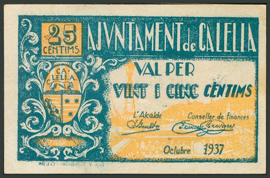 CALELLA (BARCELONA). 25 Céntimos. Octubre 1937. Serie A. (González: 7290). MBC.