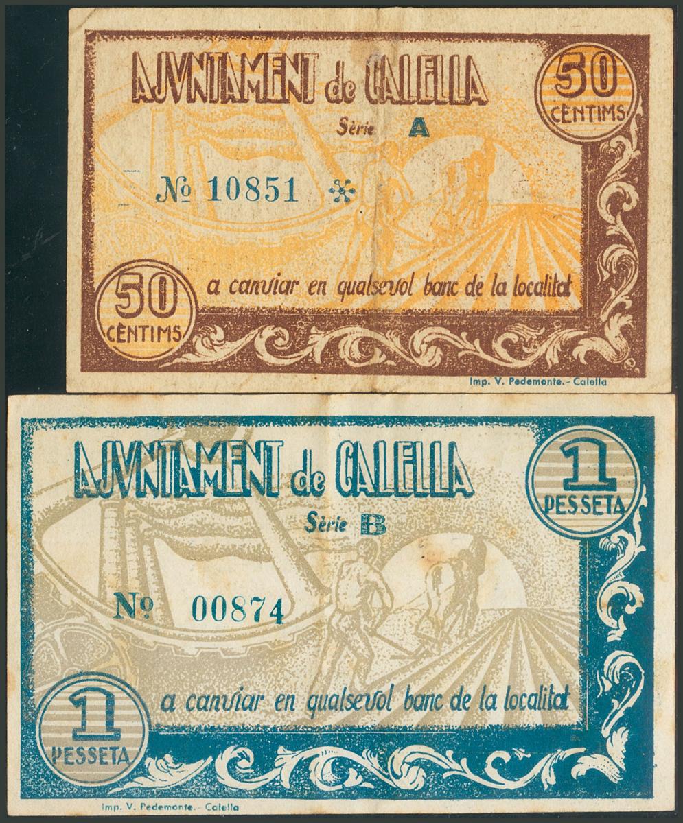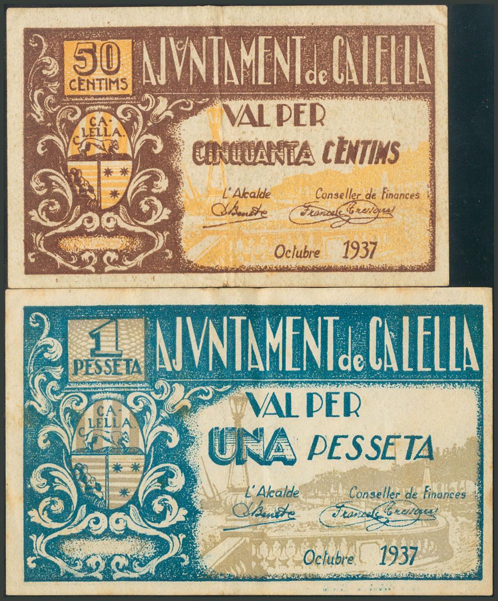 CALELLA (BARCELONA). 50 Céntimos y 1 Peseta. Octubre 1937. Series A y B. (González: 7291/92). MBC.