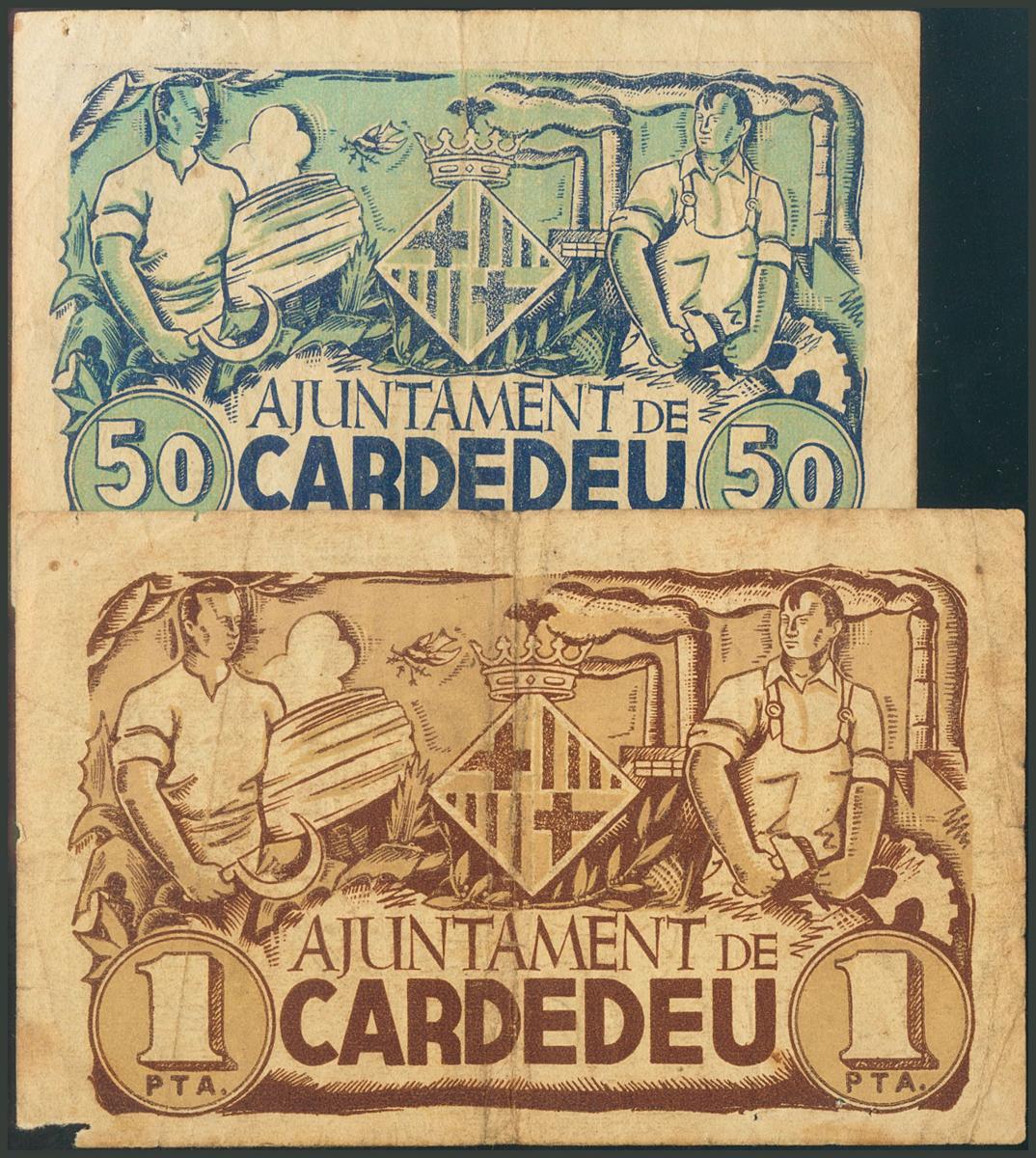 CARDEDEU (BARCELONA). 50 Céntimos y 1 Peseta. 1 de Junio de 1937. (González: 7386/87). RC.