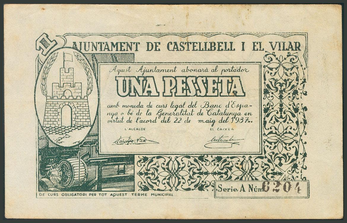 CASTELLBELL I EL VILAR (BARCELONA). 1 Peseta. 22 de Agosto de 1937. (González: 7427). MBC.