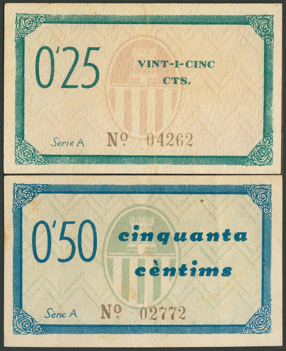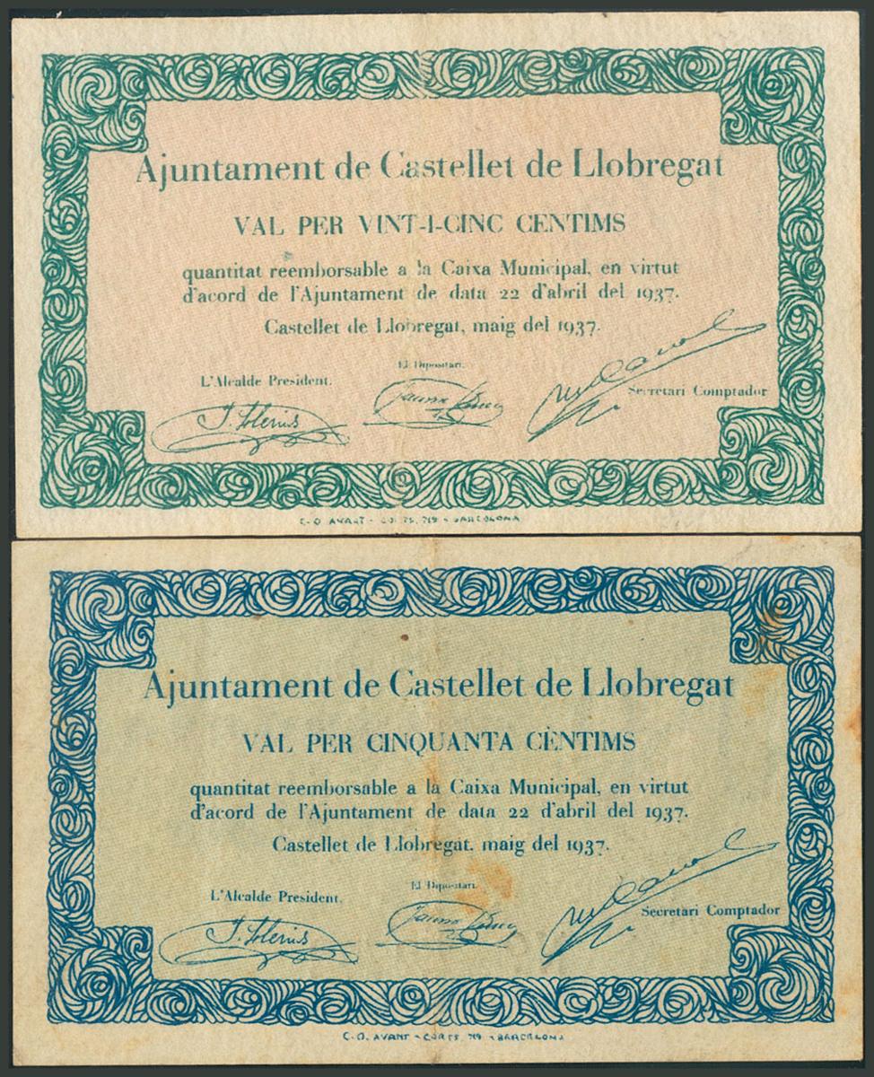 CASTELLET DE LLOBREGAT (BARCELONA). 25 Céntimos y 50 Céntimos. Mayo 1937. (González: 7449/50). EBC-/MBC.
