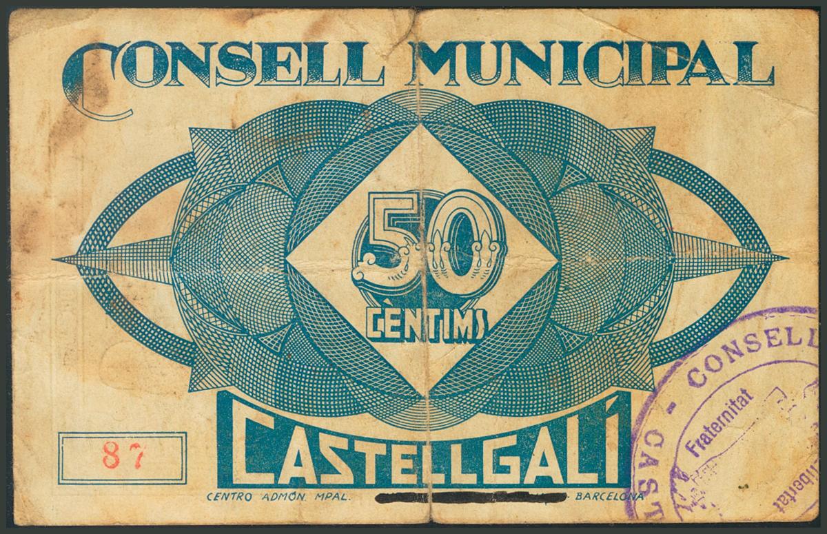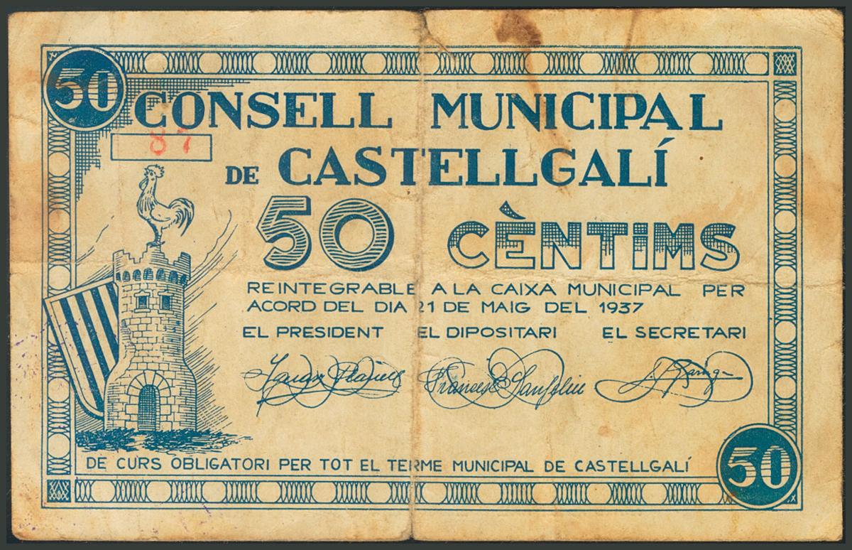 CASTELLGALI (BARCELONA). 50 Céntimos. 21 de Mayo de 1937. (González: 7466). MBC.