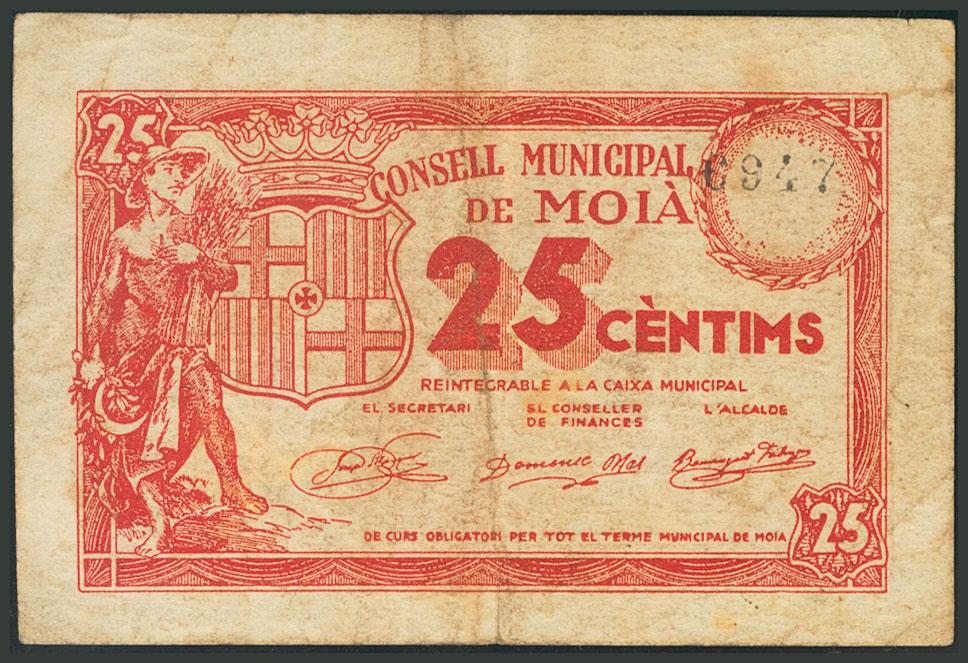 MOIA (BARCELONA). 25 Céntimos. (1938ca). (González: 8689). BC.