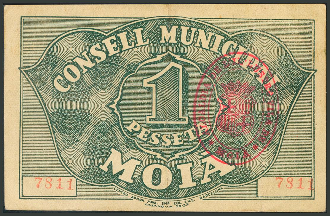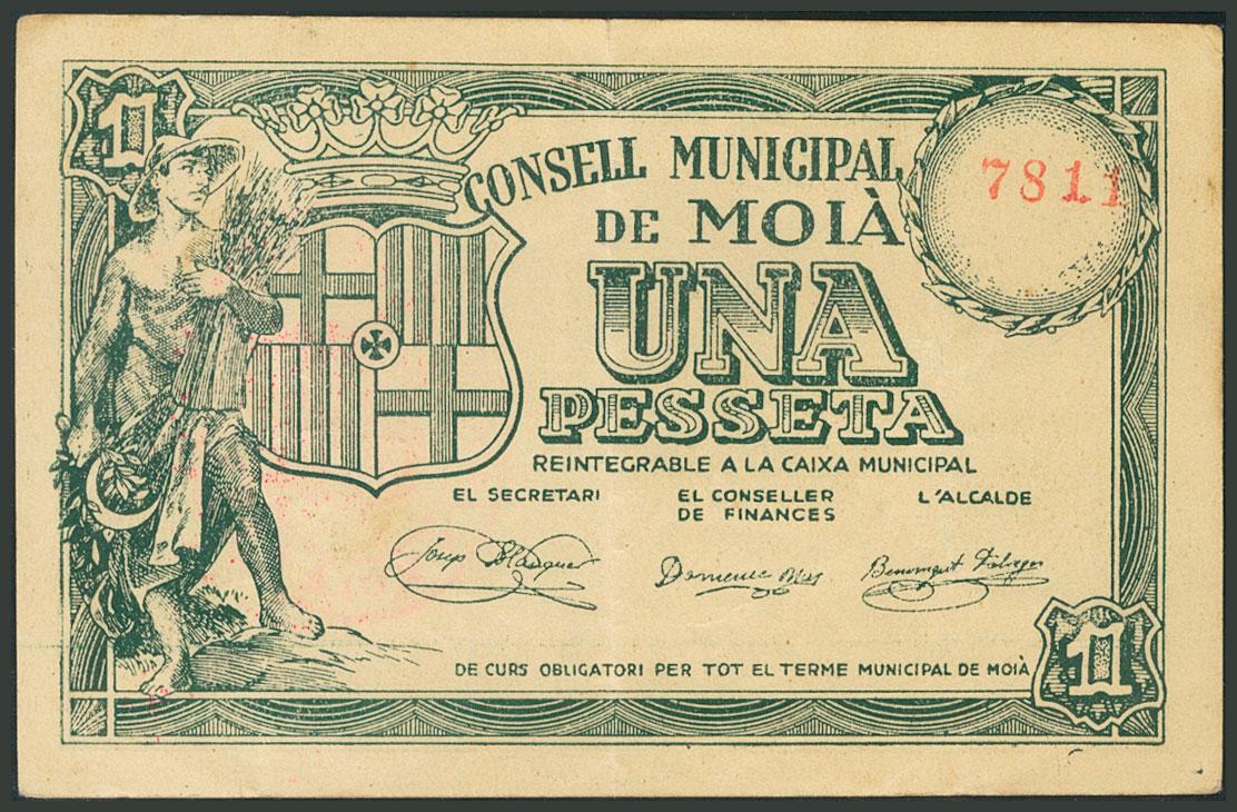 MOIA (BARCELONA). 1 Peseta. (1938ca). (González: 8690). MBC.
