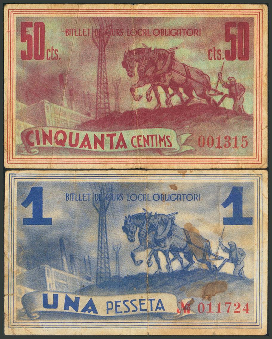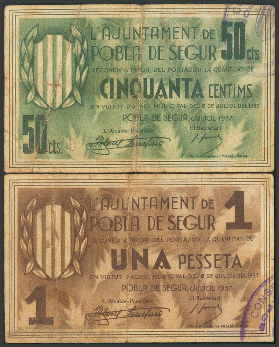 POBLA DE SEGUR (LERIDA). 50 Céntimos y 1 Peseta. 6 de Julio de 1937. (González: 9340/41). BC.