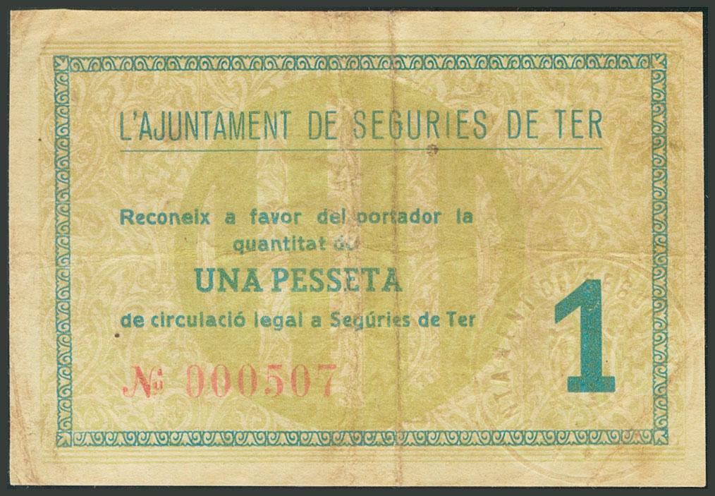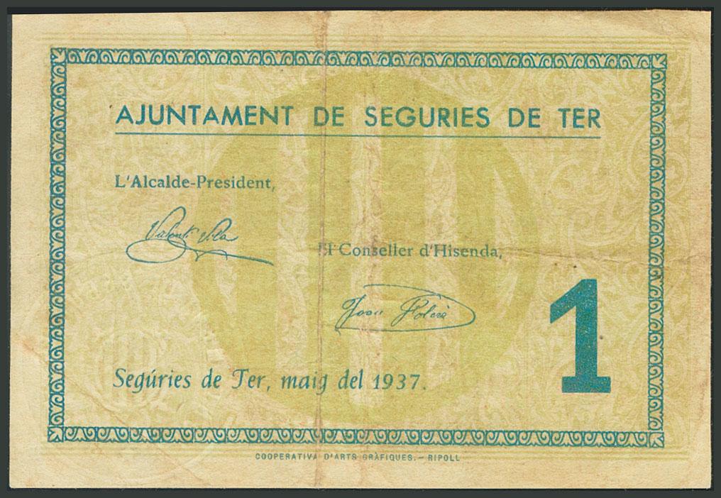 SEGURIES DE TER (GERONA). 1 Peseta. Mayo 1937. (González: 9916). BC.