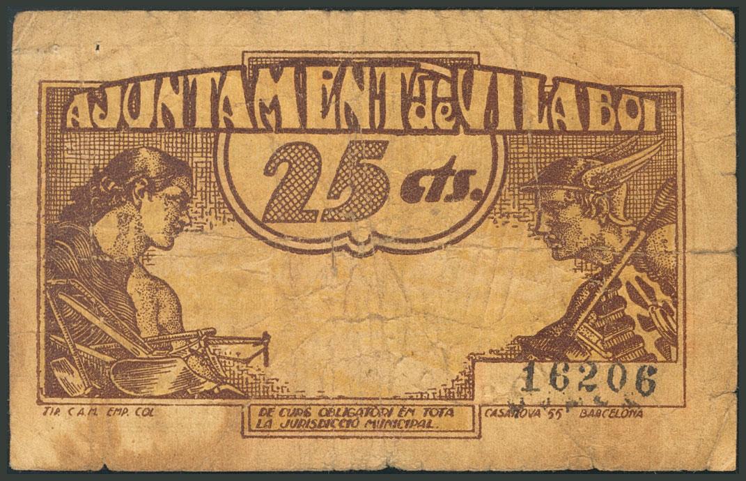 VILABOI (BARCELONA). 25 Céntimos. 19 de Mayo de 1937. (González: 10679). BC.