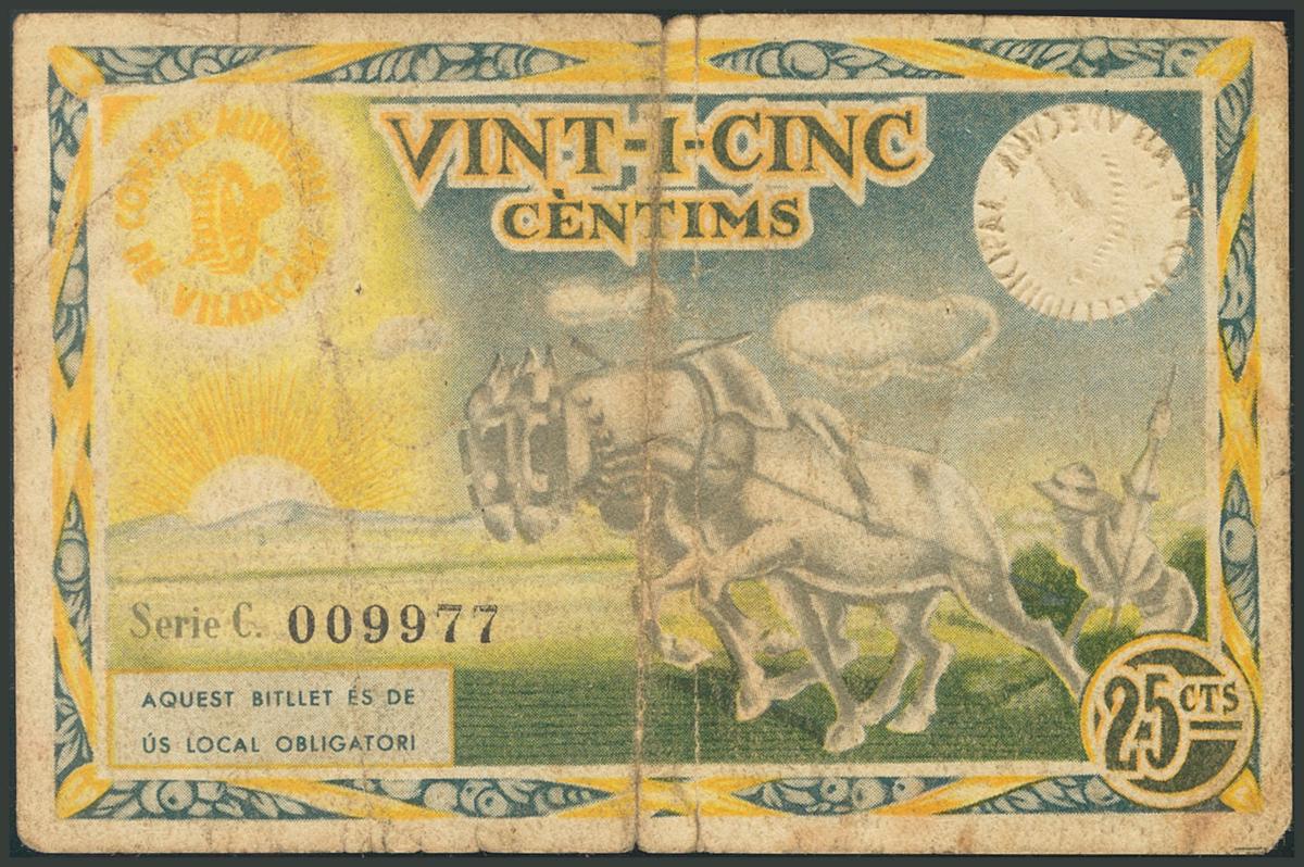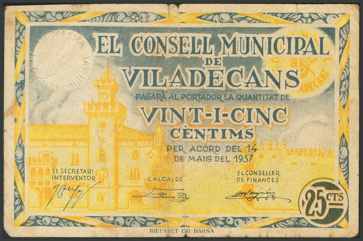 VILADECANS (BARCELONA). 25 Céntimos. 14 de Mayo de 1937. Serie C. (González: 10686). BC.