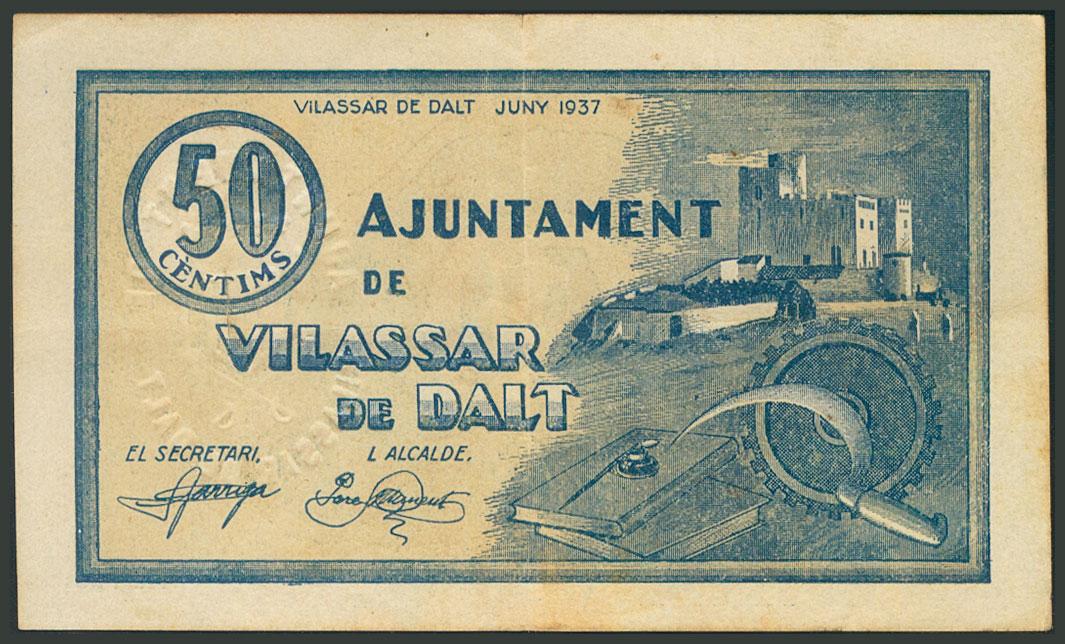 VILASSAR DE DALT (BARCELONA). 50 Céntimos. Junio 1937. (González: 10852). EBC.
