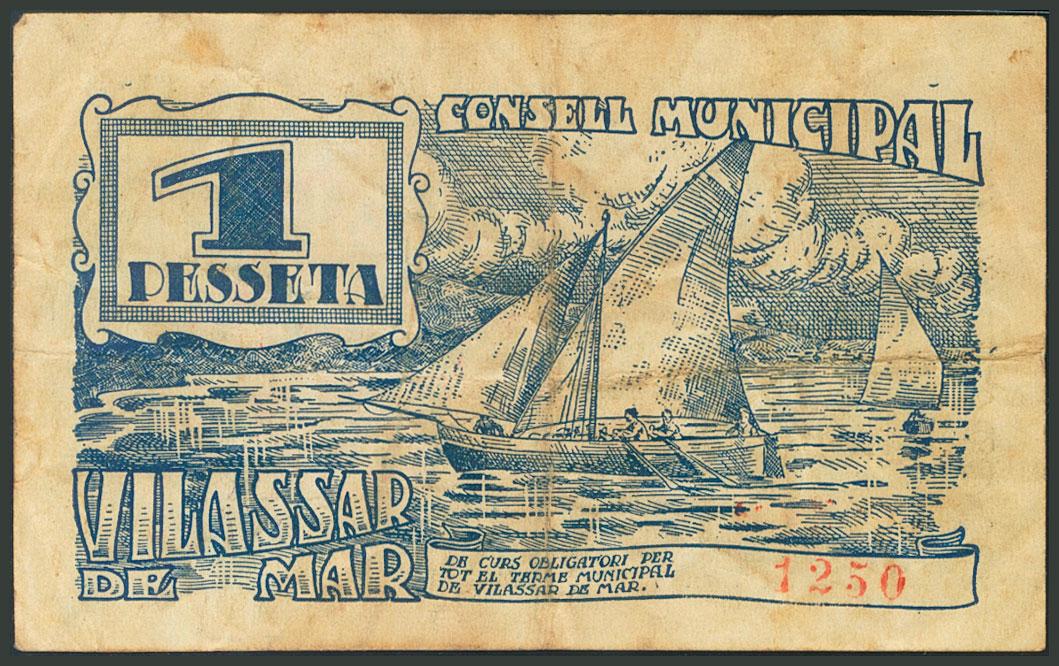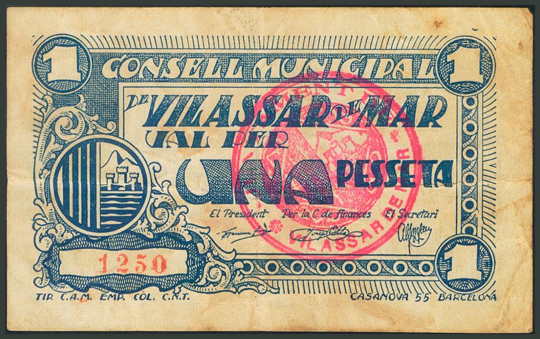 VILASSAR DE MAR (BARCELONA). 1 Peseta. 10 de Abril de 1937. (González: 10867). MBC.