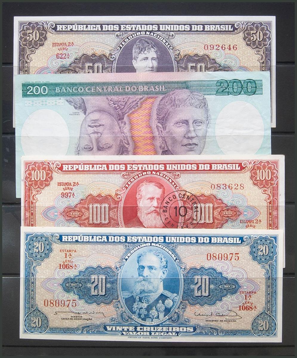 BRASIL. Conjunto de 13 billetes de diferentes valores y fechas. SC/MBC. A EXAMINAR.