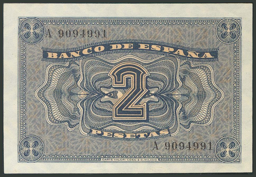 2 Pesetas. 12 de Octubre de 1937. Serie A. (Edifil 2017: 426). Apresto original. Inusual. SC-.