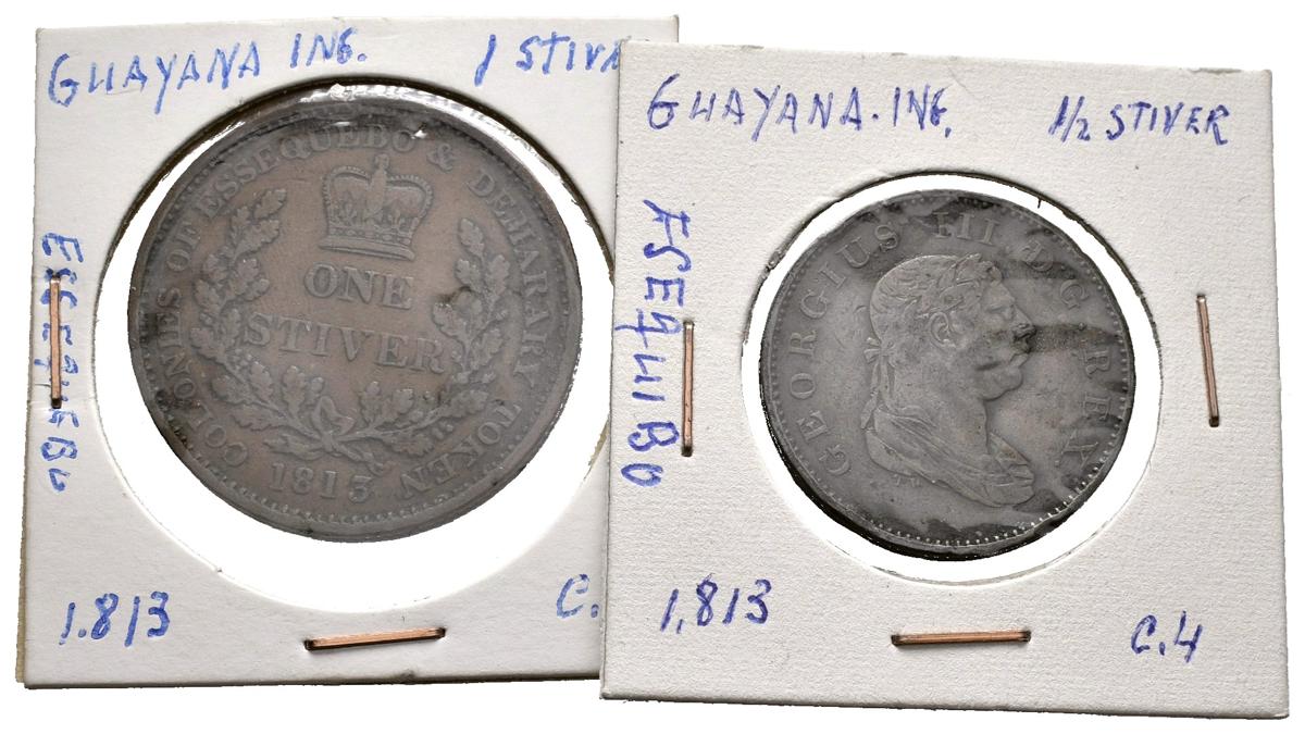 GUAYANA BRITÁNICA. Conjunto de 1/2 y 1 Stiver del año 1813. Colonia de Esequibo. Diferentes estados de conservación. A EXAMINAR.