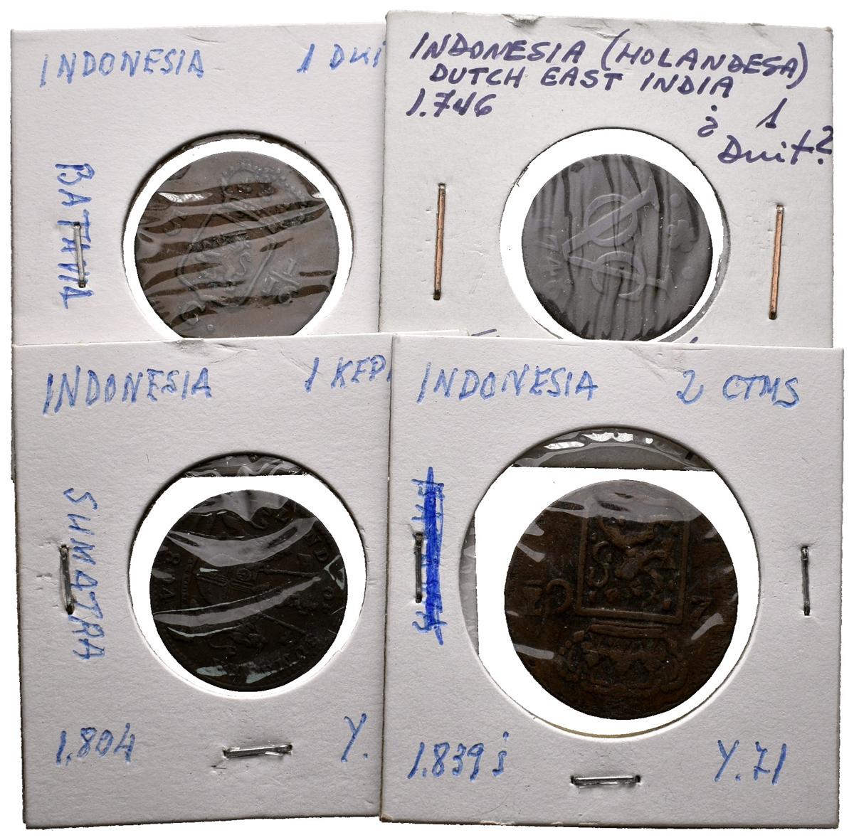 INDIA HOLANDESA. Conjunto de 4 monedas de las Indias Holandesas de los siglos XVII y XVIII. Incluye valores de 1 Duit, 1 Keping y 2 Cents. Diferentes estados de conservación. A EXAMINAR.