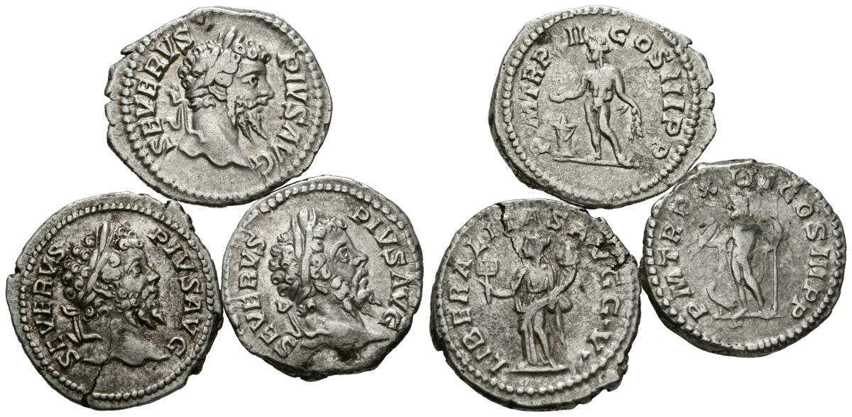 SEPTIMIO SEVERO. Conjunto de 3 Denarios con diferentes reversos. MBC. A EXAMINAR.