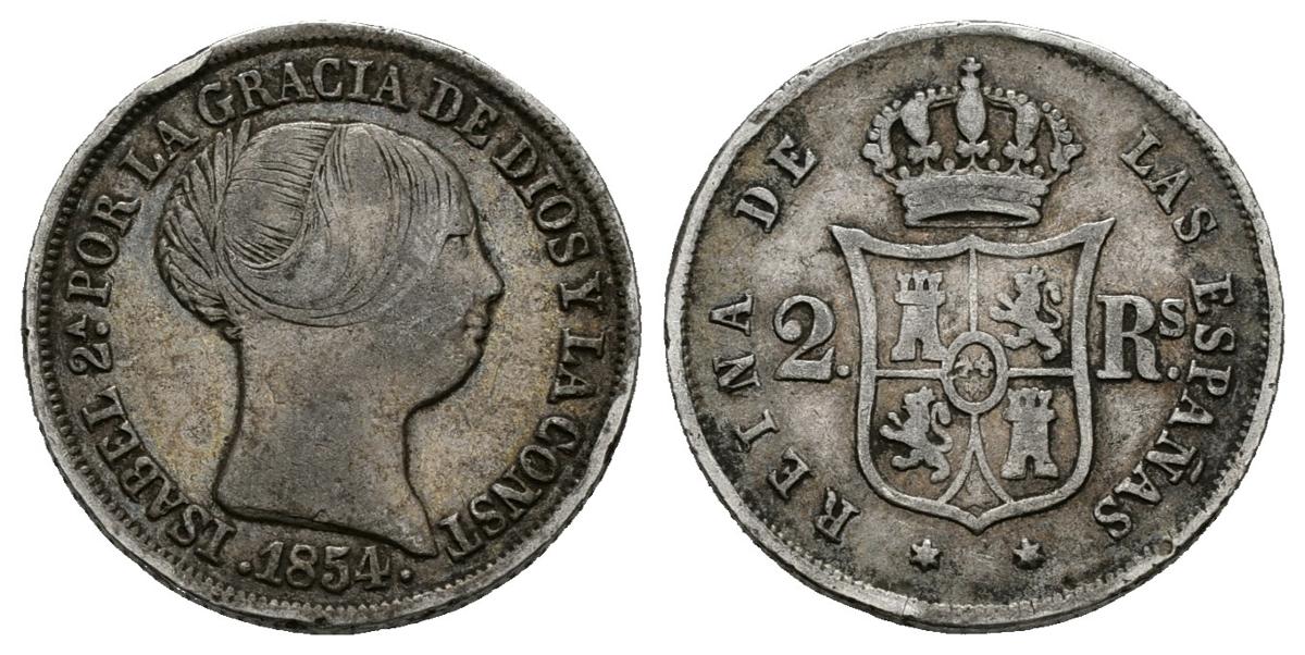 ISABEL II (1833-1868). 2 Reales. (Ar. 2,61g/18mm). 1854. Madrid. (Cal-2019-369). MBC-.