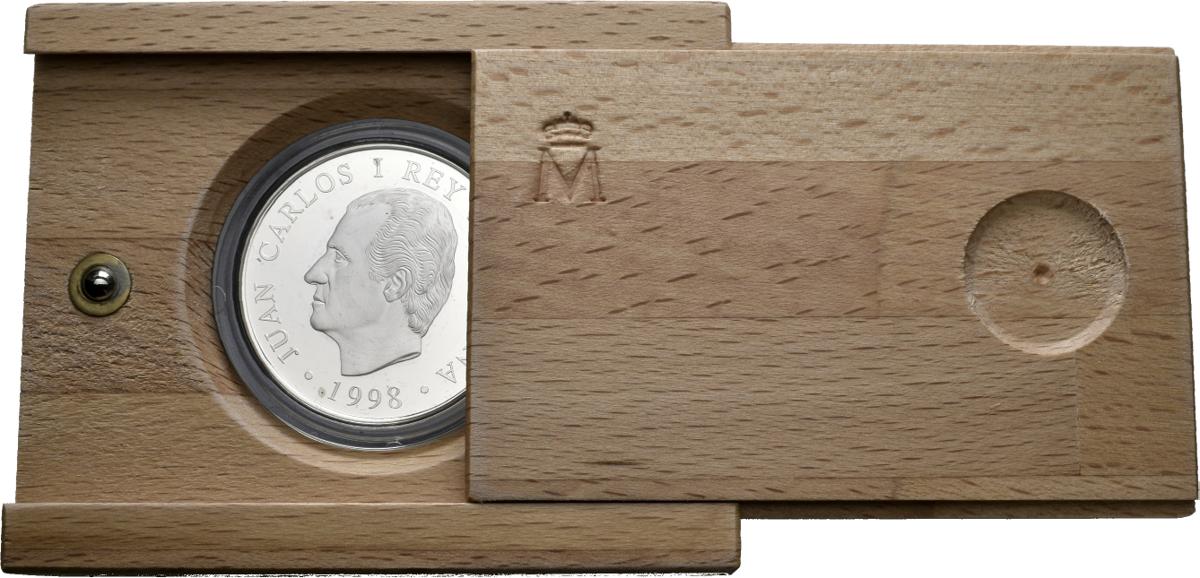 JUAN CARLOS I. 1000 Pesetas. (Ar. 13,50g/33mm). 1998. "MUNDIAL DE FUTBOL 1998". PROOF. Presentada en estuche oficial con certificado.