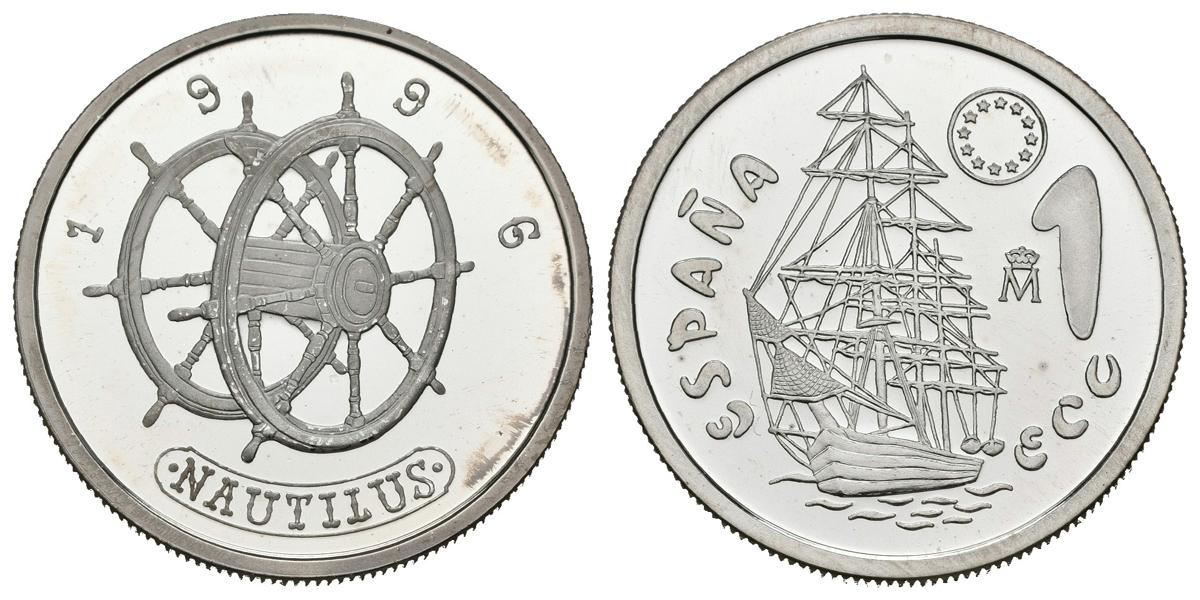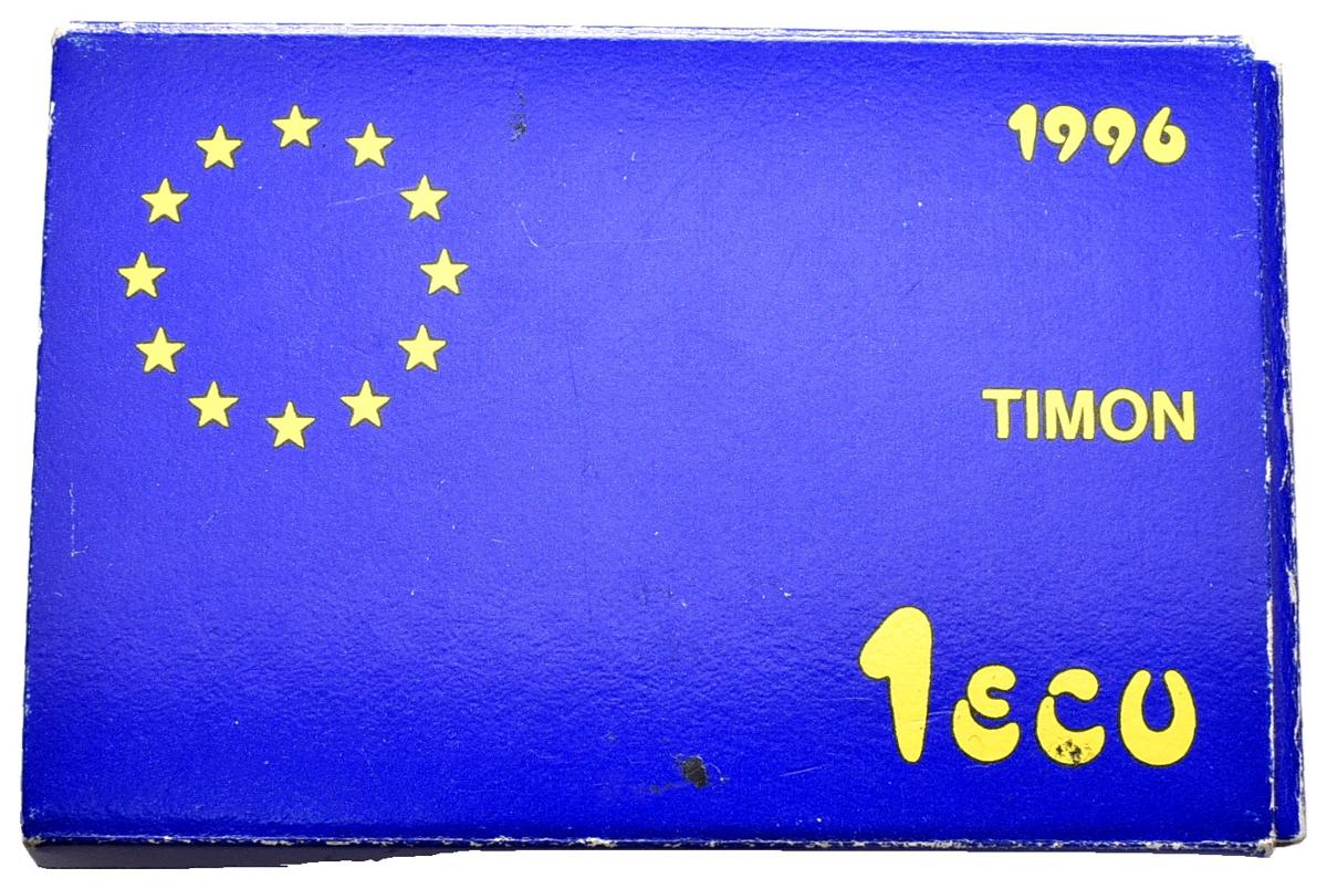 JUAN CARLOS I. 1 Ecu. (Ar. 6,72g/24mm). 1996. "TIMON". PROOF. Presentada en estcuhe oficial con certificado.