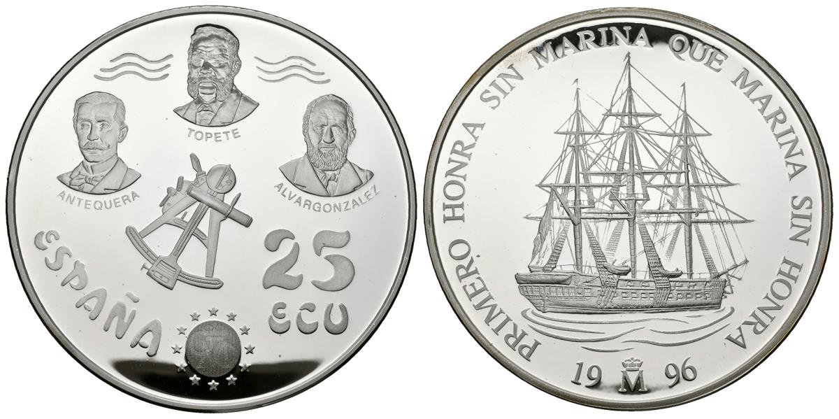 JUAN CARLOS I. 25 Ecu. (Ar. 168,75g/73mm). 1996. "VILA DE MADRID". PROOF. Presentada en estuche oficial y con certificado.