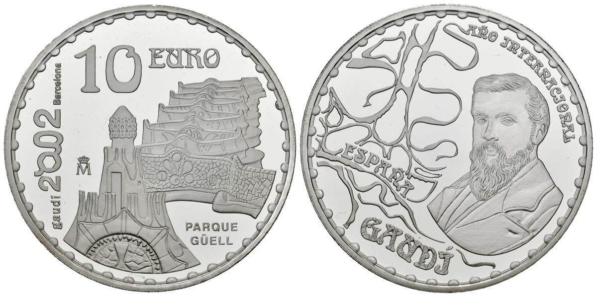 JUAN CARLOS I. 10 Euros. (Ar. 27,00g/40mm). 2002. "PARQUE GUELL". PROOF. Presentada en estuche oficial con certificado.
