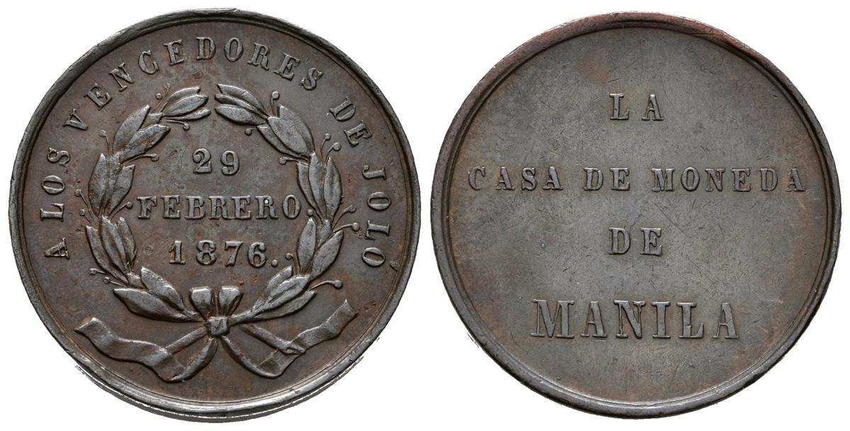 FILIPINAS. A los vencedores de Joló. Reinado de Alfonso XII. (Ae. 7,14g/23mm). 1876. (Vives 847 var). Variante de metal. EBC. Escasa.