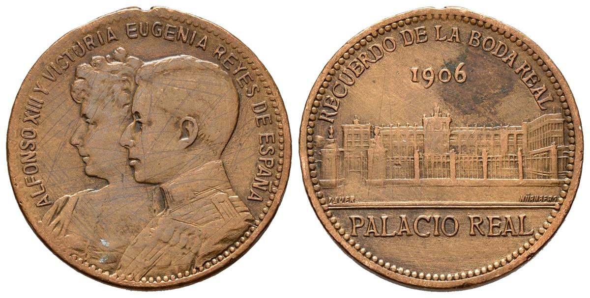 MEDALLA. Conmemoración de la boda Real entre Alfonso XIII y Victoria Eugenia. Anónima. 1906. (Br. 3,64g/21mm). MBC.