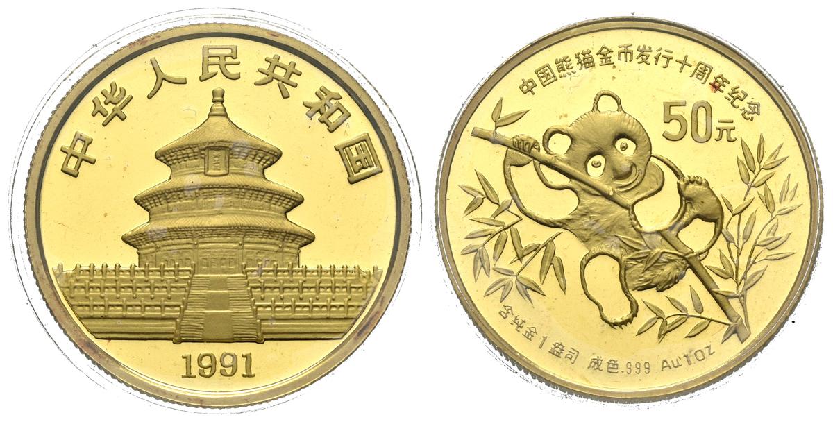 CHINA. 50 Yuans. (Au. 31,07g/27mm). 1991. (Km#357). PROOF. Presentado en encapsulado y blíster oficial.