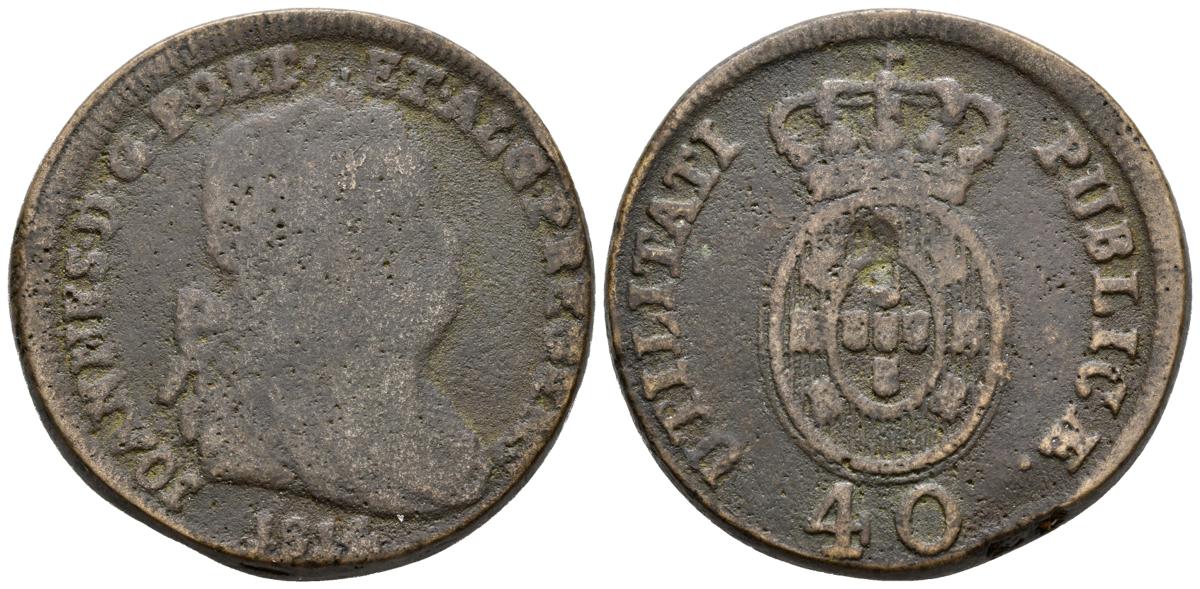 PORTUGAL. 40 Reis. (Ae. 32.26g/35.8mm). 1814. Joao, Príncipe Regente. (Gomes 10.04 Fundida). BC+/MBC-.