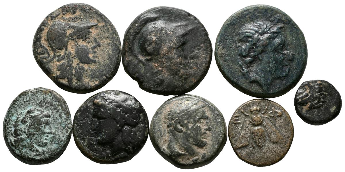 GRECIA ANTIGUA. Lote compuesto por 8 monedas de bronce diversas. Diferentes calidades. A EXAMINAR.