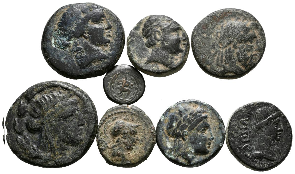 GRECIA ANTIGUA. Lote compuesto por 8 monedas de bronce diversas. Diferentes calidades. A EXAMINAR.