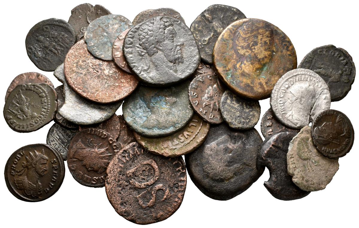 IMPERIO ROMANO. Lote compuesto por 35 monedas de diferentes emperadores y épocas. Calidades baja. A EXAMINAR.