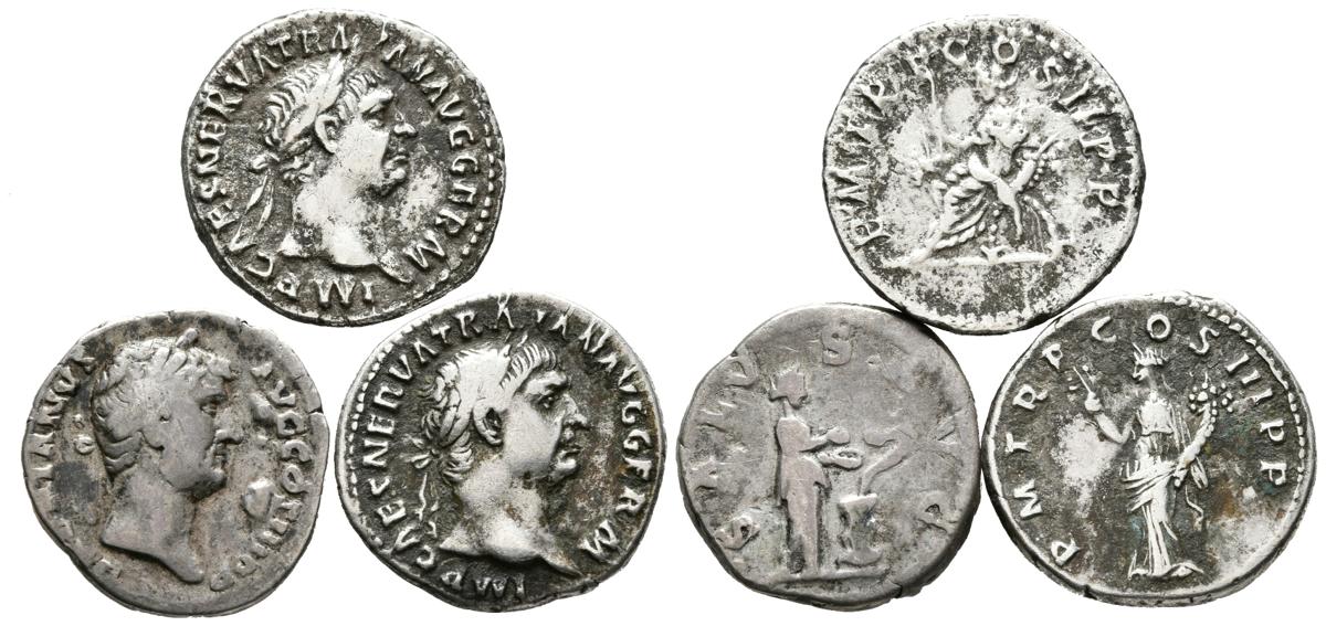 IMPERIO ROMANO. Lote compuesto por 3 Denarios de Trajano (2) y Adriano. Ar. BC+/MBC. A EXAMINAR.