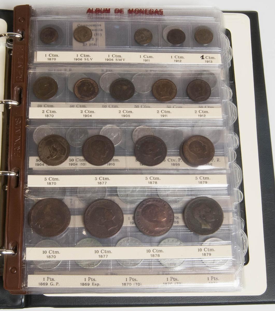 CENTENARIO DE LA PESETA. Colección avanzada compuesta por 94 monedas de todos los valores, algunos muy avanzados con fechas escasas y algunas falsas de época. 71 monedas de plata y 23 monedas de otros metales menos nobles. Presentado en álbum especializado. Diferentes estados de conservación. A examinar.