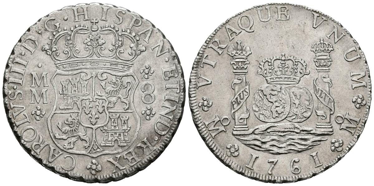 CARLOS III (1759-1788). 8 Reales. (Ar. 26,94g/38mm). 1761. México MM. (Cal-2019-1075). EBC-. Rara así.