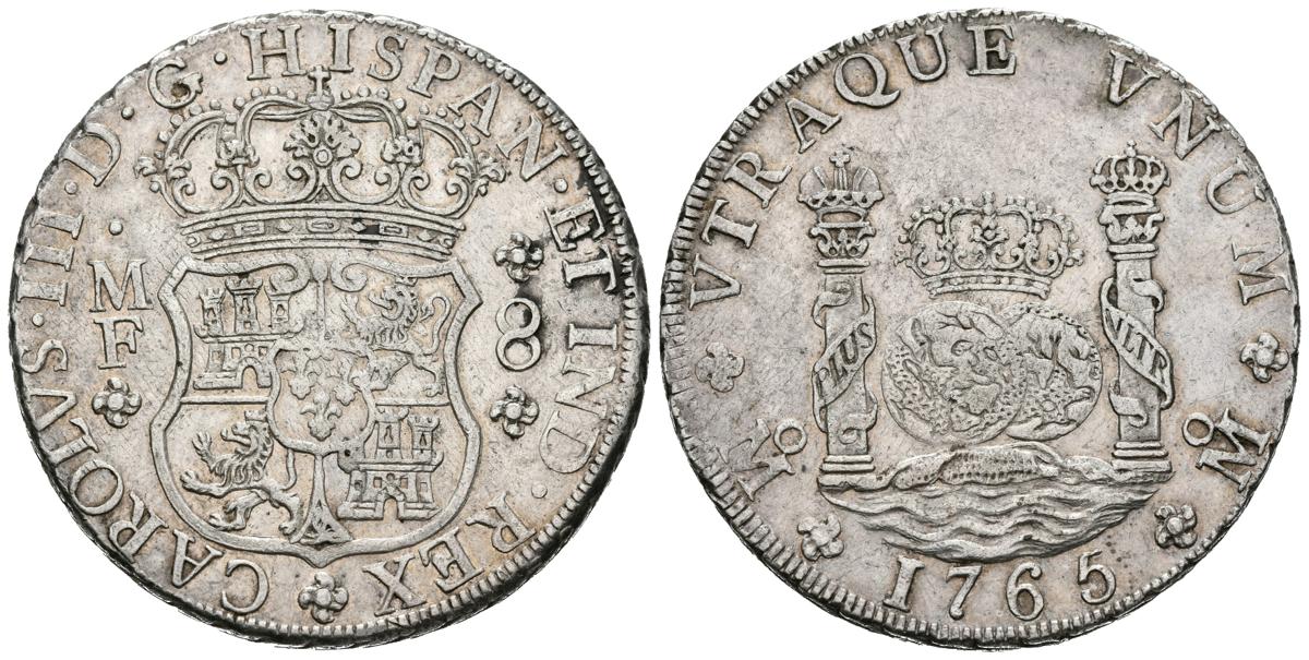 CARLOS III (1759-1788). 8 Reales. (Ar. 27,03g/38mm). 1765. México MF. (Cal-2019-1088). MBC+.