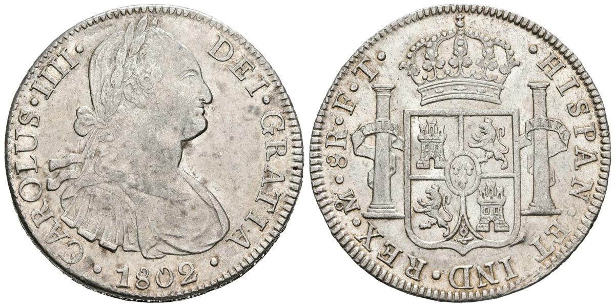 CARLOS IV (1788-1808). 8 Reales. (Ar. 26,92g/40mm). 1802. México FT. (Cal-2019-975). EBC-/EBC.
