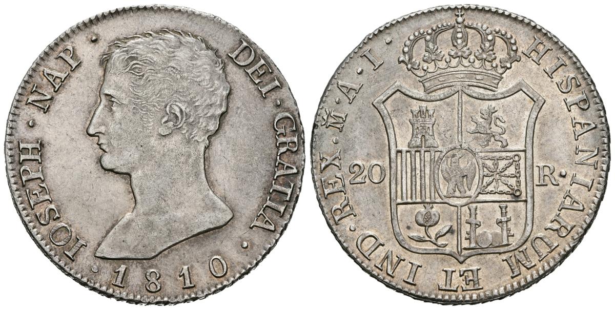 JOSE NAPOLEON (1808-1813). 20 Reales. (Ar. 26,83g/39mm). 1810. Madrid AI. (Cal-2019-37). Aguila grande. EBC-.