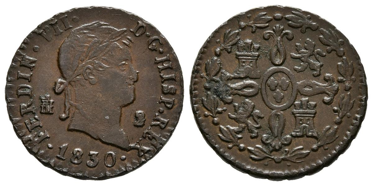 FERNANDO VII (1808-1833). 2 Maravedís (Cu.2,60g/19,00mm). 1830. Segovia. (Cal-2019-152). EBC-.
