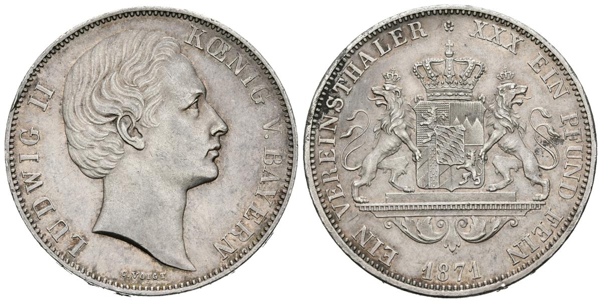 ALEMANIA. Thaler (Ar. 18,49g/33mm).1871. Baviera. (Kahnt 129; Davenport 613). G. Voigt debajo del busto. EBC-