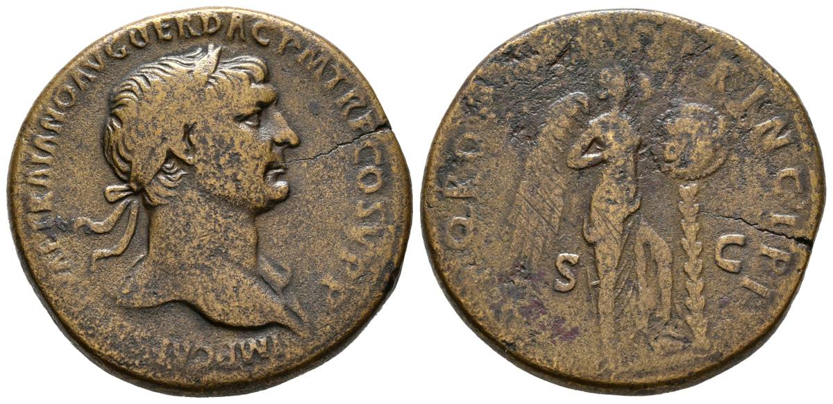 TRAJANO. Sestercio. (Ae. 24,54g/33mm). 104-107 d.C. Roma. (RIC 528). MBC-. Limpiada.