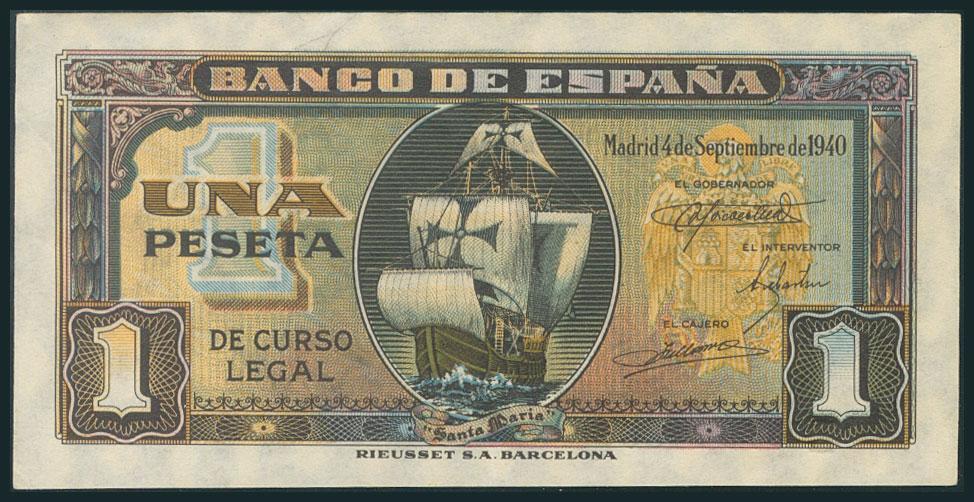1 Peseta. 4 de Septiembre de 1940. Serie E. (Edifil 2017: 442). EBC+.