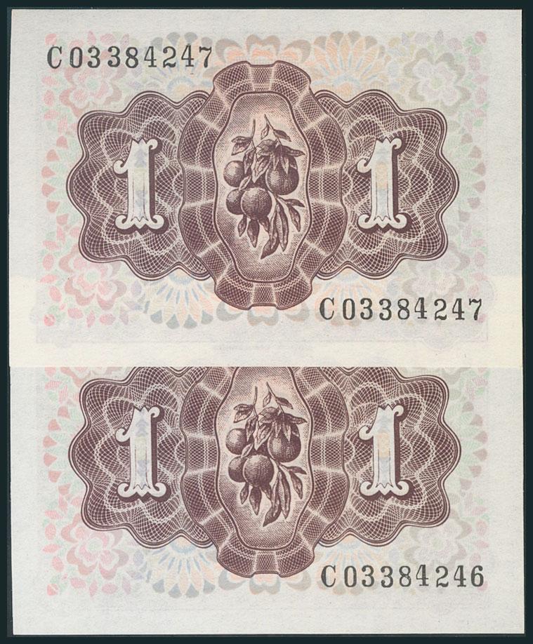 1 Peseta. 19 de Junio de 1948. Pareja correlativa. Serie E. (Edifil 2017: 457a). Apresto original. SC.